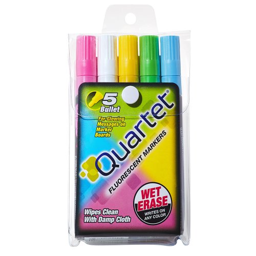 Quartet Glo-Write Fluorescent Markers, Wet-Erase, Assorted Colors, 5 Pack (5090)