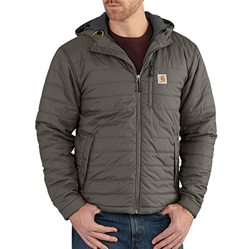 Studio : Carhartt Sportswear - Mens Publisher : Carhartt Sportswear - Mens Binding : Apparel Product Description Amazingly durable and dependably water repellent. Rolls with the punches when the rain rolls in. Lightweight yet warm, it can be worn by itself on warmer days or as a layer on chillier days. Durable and water repellent. Made from 1.75-ounce, 100 percent nylon cord ur a shell and offers nylon lining quilted to 100gram polyester insulation, left-chest map pocket, two lower-front pockets, two inside pockets: one with zipper closure and one with hook-and-loop closure, lower pockets with hidden snap closure, hook-and-loop adjustable cuffs, drawcord adjustable hem, triple-stitched main seams for durability, drop tail for added coverage and has an attached hood. 0