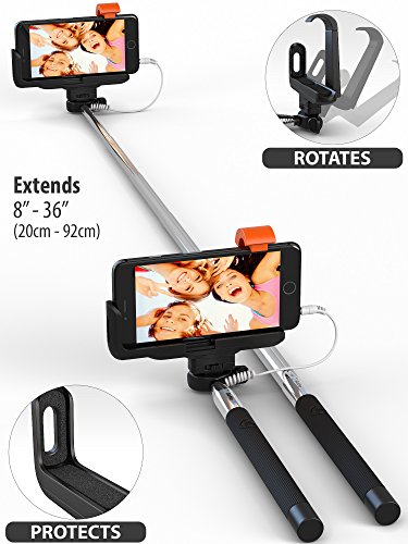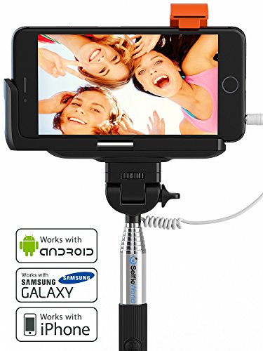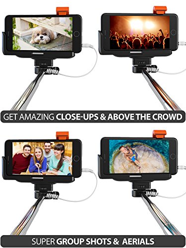 Premium 5-In-1 Wired Selfie Stick For iPhone 5, 6, Samsung Galaxy - Takes Selfies In Seconds, Get Perfect HD Photos, Video, Operates Flash - No Apps, No Downloads, No Batteries Required