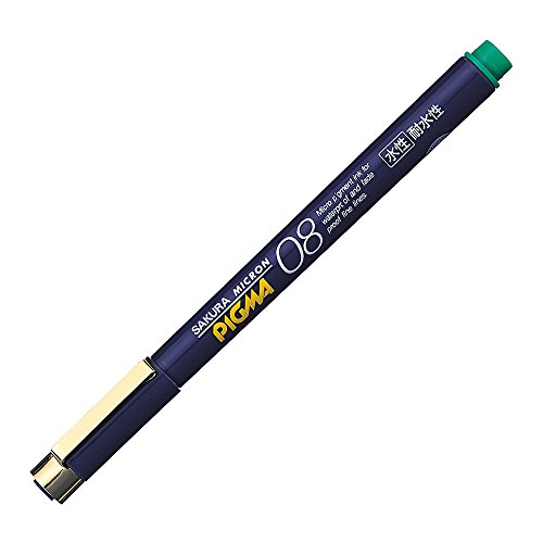 -. Feature : Sakura pigment ink pen, pigma micron 08 green / Model-ESDK08#29 / Water base pigment color pen from Japanese stationary Brand sakura cray-pas, pigma Series