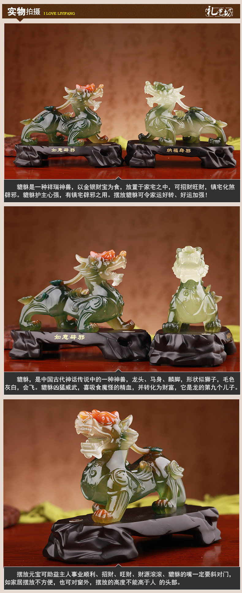 礼艺坊招财仿玉貔貅摆件工艺品风水家居室内装饰商务开业礼品