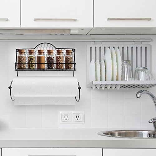Sorbus Paper Towel Holder, Spice Rack and Multi-Purpose Shelf—Wall Mounted Storage for Kitchen Accessories, Towels, Toiletries, Supplies, etc.—Ideal for Kitchen/Bathroom—Made of Steel (Black)