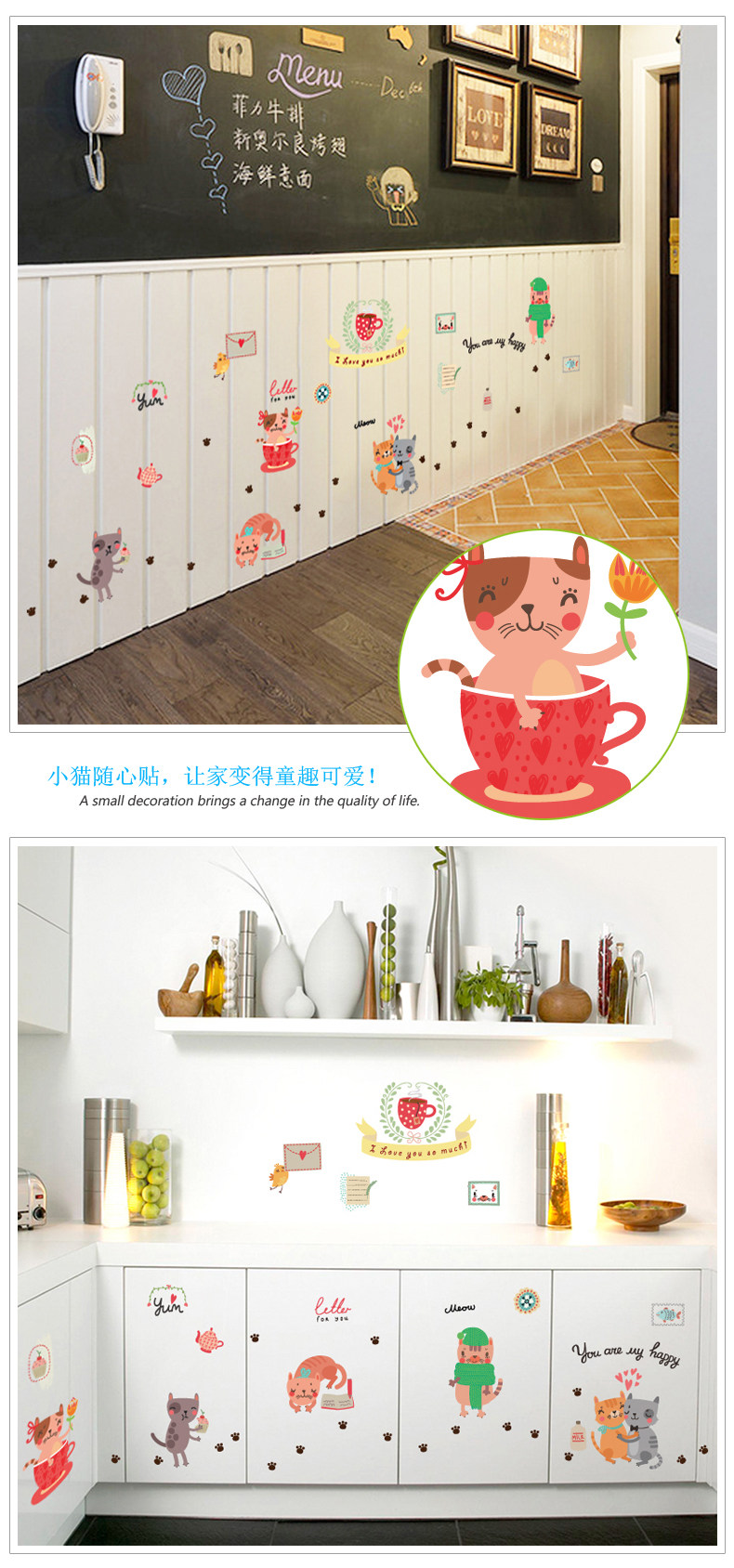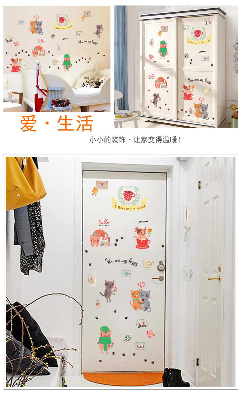 可移除墙贴儿童房装饰卡通可爱猫咪随心贴画客厅卧室背景墙贴纸