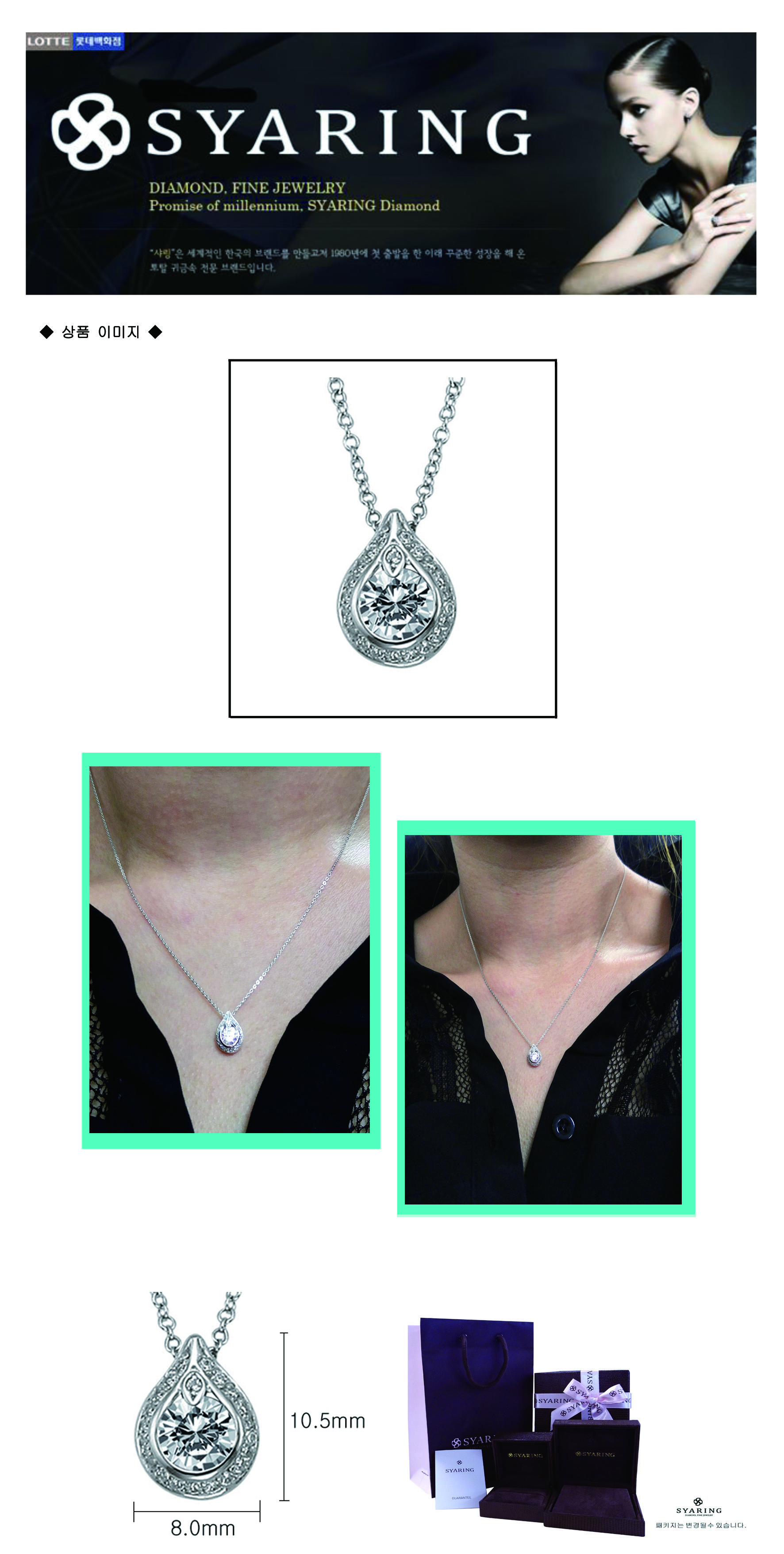 | 교 환 및 반 품 | * 샤링 제품은 고객 한분, 한분을 위한 주문제작 제품으로 교환 및 환불, 반품이 안되오니 신중한 구매 결정 부탁 드립니다. * 단, 샤링 제품의 도금불량, 조립불량 등 제품 제작상의 결함의 경우, 재정경제부가 고시(2006-36)한 소비자 피해 보상규정에 따라 보상해 드립니다. * 주문 취소할 경우, 주문 당일 24시간 이내에만 취소 가능합니다. * 상품 및 포장이 훼손되거나, 상품을 착용했을 경우에는 교환 및 반품이 불가능합니다. * 온라인에서 구매하신 상품은 백화점 매장에서 교환/반품이 불가능합니다. |