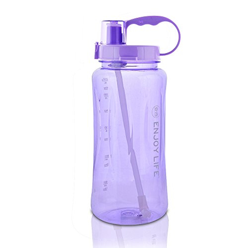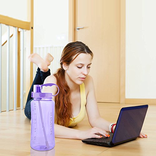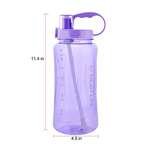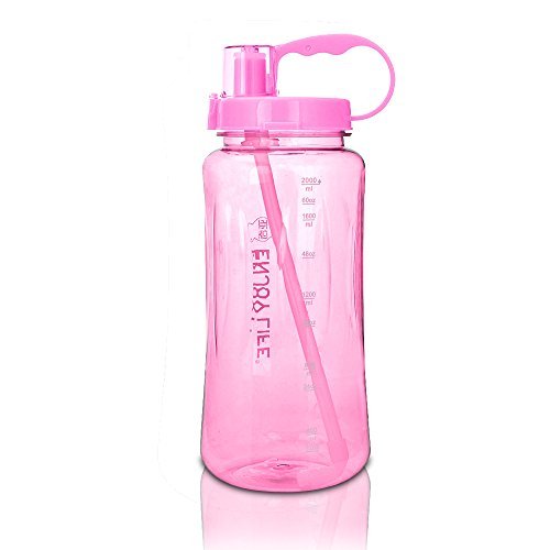 The safety food grade plastic bottle available in a variety of colors,transparent with scale,large capacity,easy to carry with strap and human design handle,easy to clean and accommodates ice cubes with wide mouth,straw design also great for kids,can use in variety of occasions, hiking, camping, fishing, travel.The fits most water purifiers and filters, and makes hand washing easy. An attached loop-top never gets lost and screws on/off easily. Features: Capacity:2L/60oz
