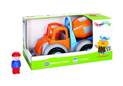 This Large Cement Truck has a rotating tumbler. Includes 1 figure. Viking Toys are sized just right for little hands and have no sharp edges.