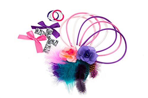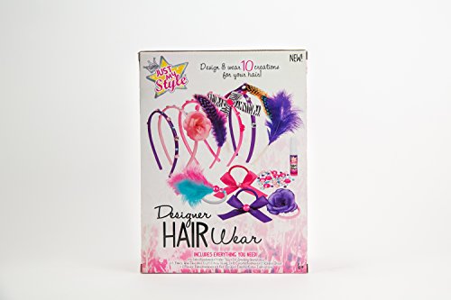 The Just My Style Designer Hair Wear Kit includes everything you need to design beautiful, unique pieces to wear in your hair. Headbands and hair ties can be personalized with gemstones, feathers, bows and more to make any hairstyle stand out from the crowd! The kit includes (6) satin headbands, (4) hair ties, (50) sparkling gemstones, fabric glue, (8) colorful feathers, (3) ribbon bows, (2) flower embellishments, (4) felt circles and easy to follow instructions. Makes a great gift for anyone who is creative and it is perfect as a solo project or as a group activity for birthday parties, sleepovers and any other fun get-togethers. The Just My Style Designer Hair Wear Kit is recommended for children age 6 and up. Just My Style is a brand of fashion activities that inspire creativity through personalization for today's tweens! The Just My Style brand encompasses all inclusive kits for jewelry making, scrapbooking, stamping and more! Just My Style is a leading creator of innovative crafts and toys that promote creativity and innovative thinking.Feature
