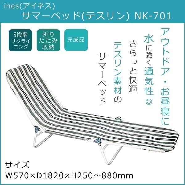 さらっとした素材のテスリン仕様の生地は、水に強い素材でレジャーに最適!!また、お部屋の中でのお昼寝ベッドとしてもお使い頂けます。背と脚の部分は5段階にリクライニング。未使用時は折りたたんで収納できます。 |