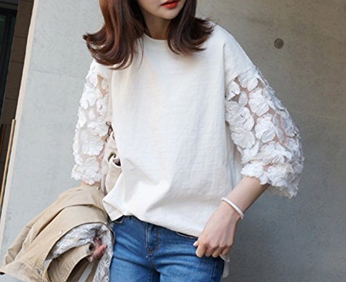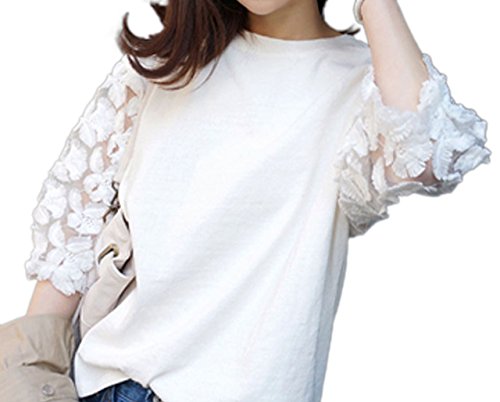 -. Feature : メイン素材:綿混紡 / フラワーレース袖の切り替えデザインがとてもキュートなトップスです。 / 袖の透け感が大人可愛らしい。デニムパンツなどとのカジュアルコーデにオススメです。 / 普段使いのデイリーウェアからちょっとしたお出かけまで様々なシーンで活躍してくれるアイテムです。 / サイズ展開:S/M/L/XL