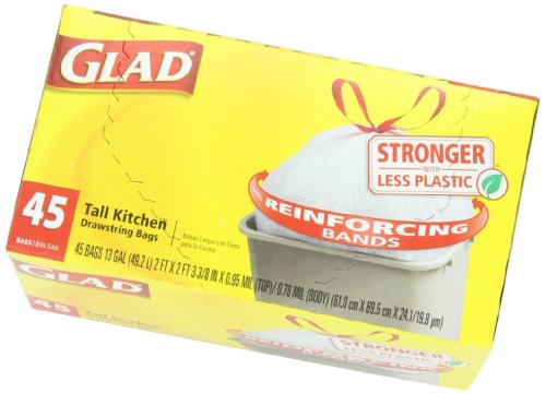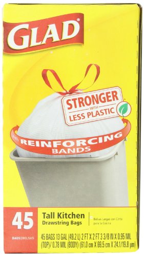 - Title : Glad Tall Kitchen Drawstring Trash Bags, 13 Gallon, 45 Count