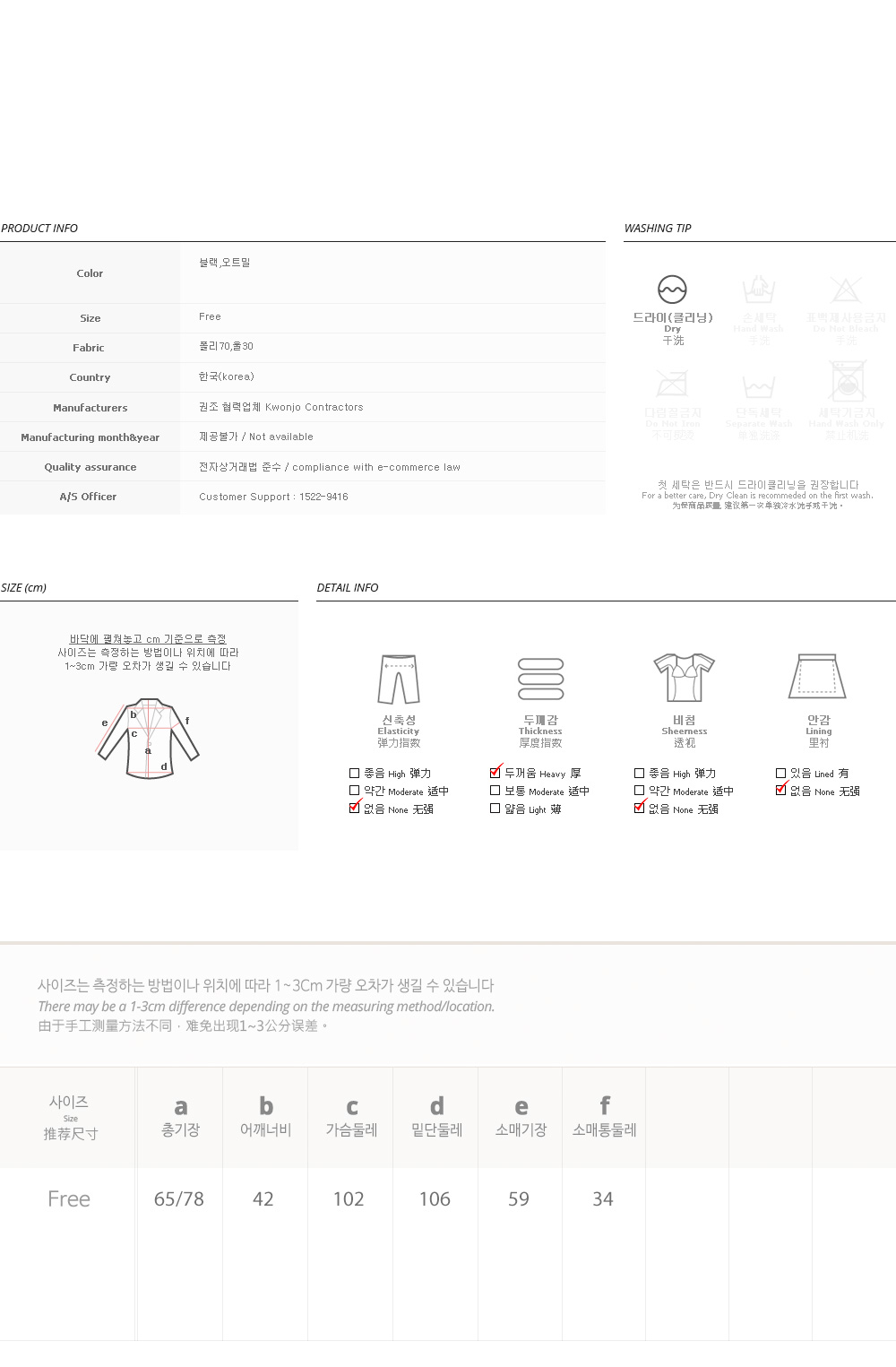 피팅 컬러와 사이즈는 오트밀, Free 입니다
