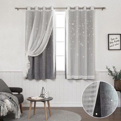 BHF린넨룩펀칭스타+코코체크창문커튼4장세트