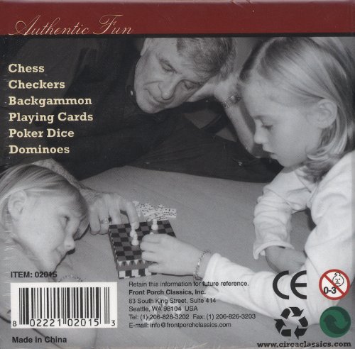- Title : Front Porch Circa Classics Six-in-One Mini Game Set Chess Checkers Backgammon Playing Cards Poker Dice and Dominoes
