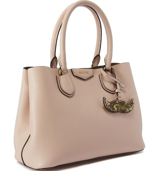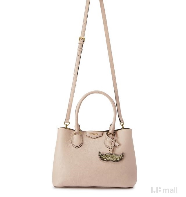 스팽글로 이루어진 탈착가능한 콧수염 모양 참 장식으로 포인트를 주었으며 내부 배색으로 세련된 외관을 연출한 토트백입니다.