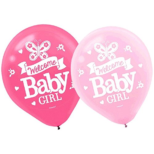 12" WELCOME LITTLE ONE GIRL ( WELCOME BABY GIRL ) PINK BABY GIRL BABY SHOWER LATEX BALLOON - BABY SHOWER BALLOON ( 15 CT )