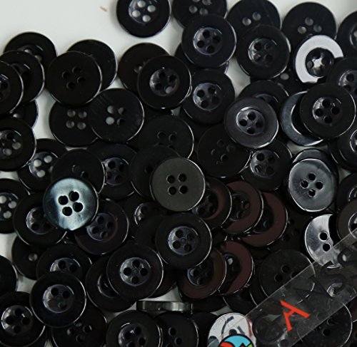 GANSSIA 15mm(0.59") 4 Holes Sewing buttons Black Color Pack of 200pcs