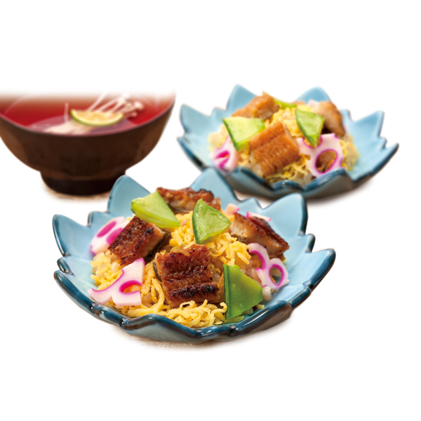 ●日本有数の漁獲量を誇る徳島県産鱧と国産うなぎを贅沢にトッピングし、華やかなちらし寿司にしたてました。