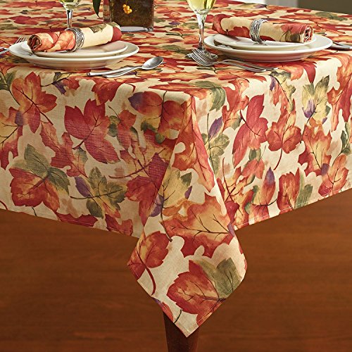 Studio : Newbridge Publisher : Newbridge Binding : Kitchen Product Description This contemporary heat transfer border print fabric tablecloth was designed to be an Autumn and Thanksgiving holiday favorite for your home. The Grateful Harvest Seasonal fabric tablecloths feature an allover leaf floral and harvest pumpkin, sunflower, and gourd motif with a subtle visual texture created by its unique lettered background. Great for use with adults and children at home or in commercial settings. Perfect for decorating for Thanksgiving and all Fall season dinner parties, weddings, banquets, entertaining and everyday use. 100% polyester construction is easy care and soil resistant. Machine washable and tumble dry and requires little or no ironing. Finished with merrowed edges. Easy to fold and store when not in use. Grateful Harvest Seasonal tablecloths are available in selection of sizes and matching napkins. Sizes available are: 60 x 84 Oblong, 60 x 102 Oblong, 60 x 120 Oblong, 60 x 144 Oblong, 70 Round. Matching Napkins are sold in sets of 8. 0