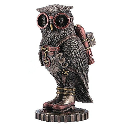 Steampunk Owl with Jetpack Statue Sculpture on Gears