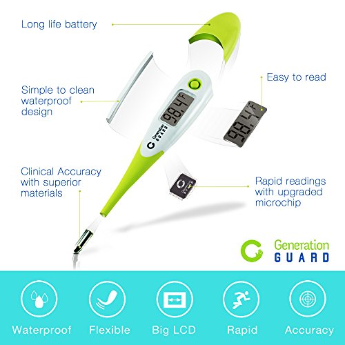 -. Feature : RAPIDLY MEASURE kids, infants, adults and animals FOUR TIMES FASTER than conventional competitors orally & rectally utilizing Generation Guard's superior microchip and highly sensitive dual mode tip best for mouth, anal and armpit use. / ENJOY CONFIDENCE in the CLINICAL ACCURACY and RELIABILITY of your premium health care thermometer with our improved build quality. Look no further this is FDA and European APPROVED by regulators as medical supplies for the home or workplace / JOIN THE HAPPY CLUB of 700+ FIVE STAR REVIEWS Thousands of customers who agree that this is the best digital thermometer they've had and the best MERCURY FREE GLASS ALTERNATIVE with a versatile Fahrenheit & Celsius option / SAFE and COMFORTABLE reading of BASAL body temperature for ovulation and BBT featuring FLEXIBLE tip and WATERPROOF design with the comfort and safety of your beloved kid or infant in mind approved by professionals / ADD TO CART NOW you are protected by our 30 day NO QUESTIONS asked money back guarantee. Clinical Digital Thermometers purchased from Generation Guard come with a 30 day money back guarantee. If you're not happy with the product for any reason, simply return it for a full refund.This manufacturer's warranty applies ONLY to purchases made from Generation Guard.