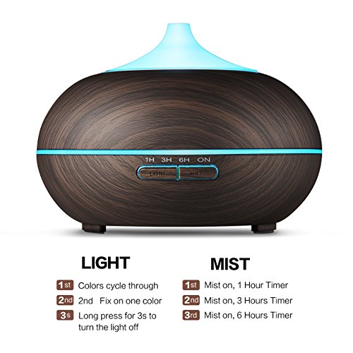 VicTsing 2nd Version Essential Oil Diffuser, 300ml Aroma Wood Grain Ultrasonic Cool Mist Humidifier with Adjustable Mist for Office Home Room Study