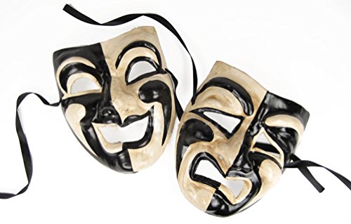 -. Brand : Largemouth -. Department : womens -. Feature : Set of Two Masks / Attaches with Black Ribbon / Great for Costume Use or Home Decor -. PackageQuantity : 1 -. ProductGroup : Apparel -. ProductTypeName : ADULT_COSTUME -. Size : One Size -. Title : Comedy / Tragedy Mask Set