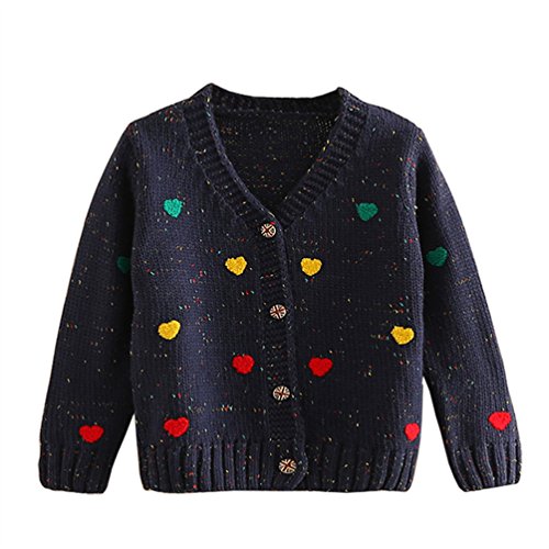 -. Feature : 可愛い子供にぴったりな超可愛いニットカーディガンが登場! / 仕様:コットン 長袖 vネック 襟・袖口・裾リブ 羽織物 杢調 フィット 伸縮性有り / 程よく厚みのあるしっかりした生地で、柔らかな肌触りが心地よいです。暖かいソフトで快適な、肌触りも非常にソフトです。 / ハート柄と雑色編み模様が愛らしく女の子の可愛らしさを引き立てます。英国旗のボタンもアクセントになります。 / シャツやワンピースなどにはアウターとして、ジャケットやコートなどにはインナーとして合わせるだけでカジュアルにもフォーマルにも活躍できること間違いなしです。