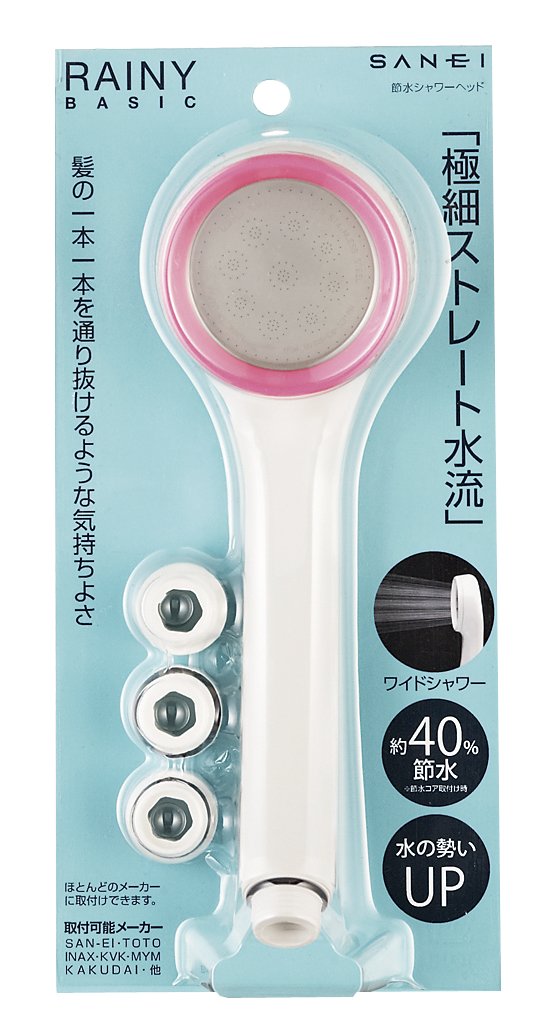 Sanei faucet water-saving shower head Rainy basic pink PS300-80XA-LP32 [soft comfortable to bathe shower hole 0.3mm-feel] (japan import)