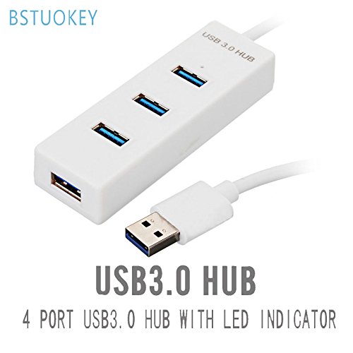 BSTUOKEY High Speed 5Gbps 4-Port USB 3.0 Hub Splitter with LED Indicator 48cm Long Cable-White