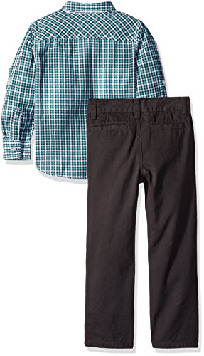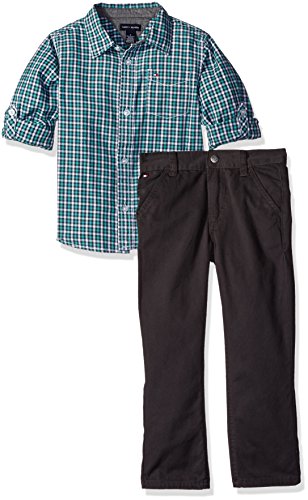 Tommy Hilfiger Little Boys' Roll up Sleeves Shirt With Twill Pants Set, Green, 7