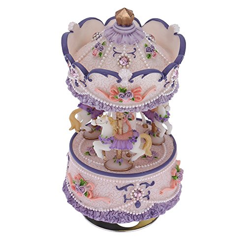 Laxury Clockwork Mechanism 3-horse Carousel Music Box Melody Carrying You from Castle in the Sky(Laputa)(Purple)