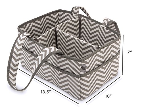 - LARGE ENOUGH FOR ALL YOUR BABY GEAR | The premium caddy measures 13.5" long, 10" wide, and 7" high is large enough for all sizes of diapers, and wipes stored in any container. The 8 exterior pockets are perfect for holding lotion, sanitizer, sunscreen, burp cloths, hairbrushes and toys.