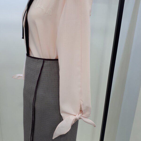 리본이 탈착되는 귀엽고 여성스러운 스타일의 블라우스입니다