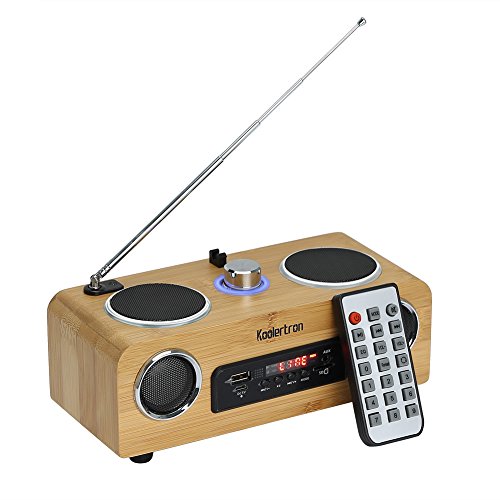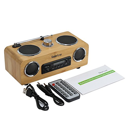 Koolertron Eco-friendly Hand-made Light Weight Mini Portable Bamboo Wood Boombox Card Speaker with Radio Function +Remote Control + Usb Cable (7.9"*4.6"*4.1inch)