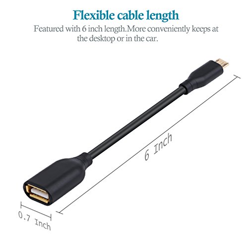FLEXIBLE CABLE LENGTH: Featured with 6 inch length, this OTG cable provides a simple smart phones or tablets host replacement of PC. More conveniently keeps at the desktop or in the car; while easily slips into a very small bag when you're on the go
