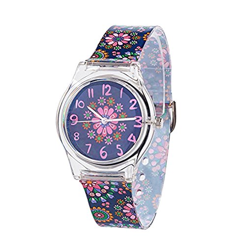 -. Title : 女の子 腕時計 時計 防水 女子 子供用 ウォッチ キッズ ガールズ 腕時計 (ダークブルー 小花柄)