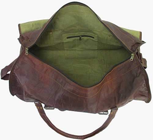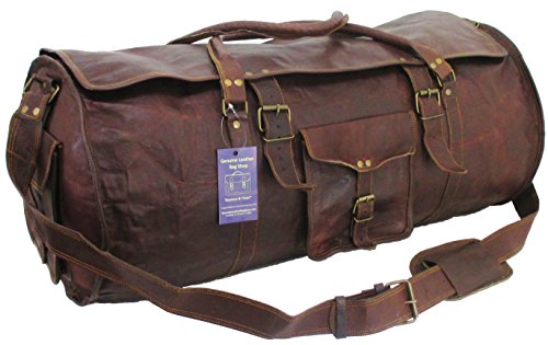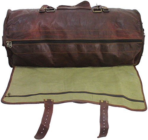 -. Brand : Genuine Leather Bag Shop -. ClothingSize : 28 inches -. Color : Brown -. Department : Mens -. Feature : Leather has been naturally processed and tanned without the use of chemicals to give each hand crafted bag a rich, rustic, vintage look and feel. The natural variation in leather as well as hand finishing gives each bag a unique texture and color tone, no two bags will look exactly the same. / Leather characteristics, as well as scratches and small scars are evidence of leathers natural beauty and should not considered to be defects. Leather softens and darkens with use. New leather odor fades within 4-6 weeks of regular use. / Full length protective leather flap across the top. Full length zipper closure underneath protective flap. Full length zipper pocket inside protective flap. Dual exterior end Pockets. Exterior side pocket. Interior zipper compartment. Adjustable shoulder strap with shoulder pad. Fully lined with sturdy green canvas. / 28" x13"x13" Dimensions , 54" Adjustable shoulder Strap with shoulder Pad, Handle Drop 12" (measurements approximant) / Strong . Durable . Supple . Light weight . Naturally Distressed . Vintage Style . Hand Crafted -. Model : CDB FLAP RD 28x13x13 1Z B -. NumberOfItems : 1 -. PackageQuantity : 1 -. ProductGroup : Apparel -. ProductTypeName : LAGE -. Size : 28 inches -. Title : Genuine Leather Bag Shop 28"x13x13 Extra Large Mens Vintage Flap Travel Duffel