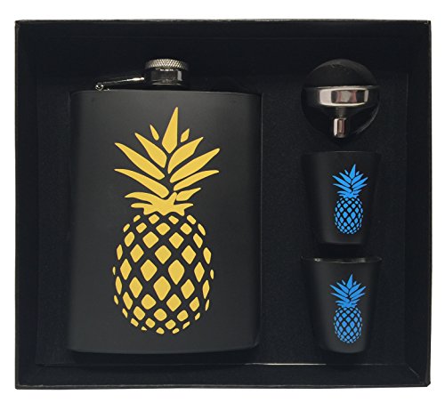 -. Title : Pineapple Flask Funnel and Shot Glass Premium Boxed Gift Set - 18/8 Stainless Steel 8oz Silver Metal Hip Flasks for Drinking Alcohol Liquor Spirits Whiskey Vodka Tequila - Gift Box