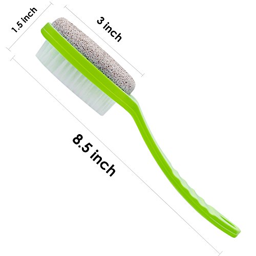 - PREMIUM QUALITY: Made of natural earth pumice stone which is non-toxic, sturdy plastic handle and bristles, the bristle is not very soft, so it strong enough to help with exfoliating dead skin and callus.