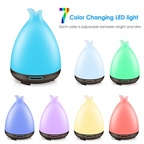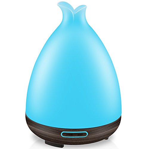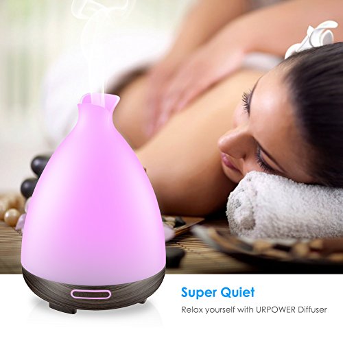 URPOWER Essential Oil Diffuser, Wood Grain Base Oil Diffuser for Essential Oils Auto Shut-off Diffuser Essential Oils Aromatherapy with Adjustable Mist Mode, 7 Color LED Lights for Bedroom Home Office