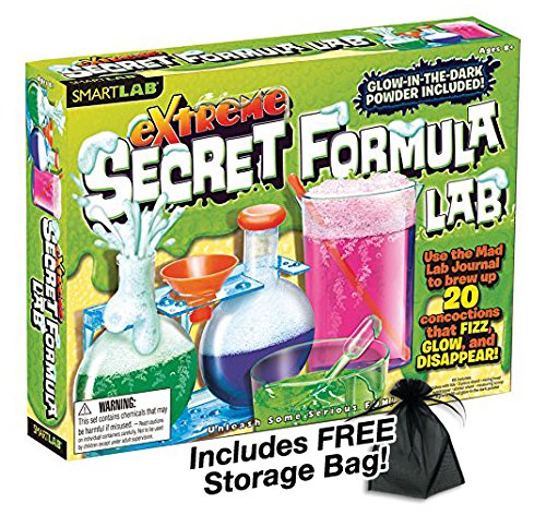 -. Binding : Toy -. EAN : 0796520341647 -. Feature : Extreme Secret Formula Lab / Makes up to 20 fun concoctions / Includes informational booklet filled with fun facts / Recommended for ages 8 and up / Great for science experiments and school -. Label : Extreme Secret Formula Lab -. Manufacturer : Extreme Secret Formula Lab -. MPN : LYSB00Q38CGDM-TOYS -. PackageQuantity : 1 -. PartNumber : LYSB00Q38CGDM-TOYS -. ProductGroup : Toy -. ProductTypeName : TOYS_AND_GAMES -. Publisher : Extreme Secret Formula Lab -. Studio : Extreme Secret Formula Lab -. Title : Extreme Secret Formula Lab w/Free Storage Bag -. UPC : 796520341647