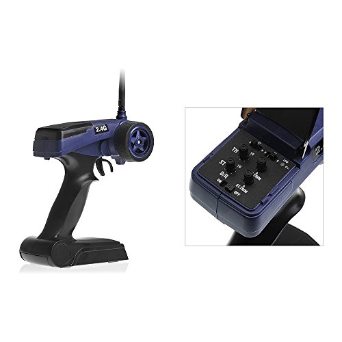 Studio : Exceed RC Publisher : Exceed RC Binding : Toy Product Description Team Exceed RC has taken steps up with the most successful drift car platforms yet and adapted it for intense wheel-spinning action. The result is the MadSpeed Drift King Car. Ready to hit the streets right from the box, the MadSpeed Drift King Car packs a long list of features and a distinctive look that will leave the competition in the dust. Power is routed through a high performance motor and electronic speed control, while a brushless motor offers the tire-shredding torque and RPMs you need for high-speed drifting. In addition to the unmatched power and ease of use, the MadSpeed Drift King looks eye catch on the road that everyone wants one. The prepainted body features detailed side mirrors, a rear wing, chrome exhaust and more, for a true street machine that can turn heads and take home trophies. Features CNC aluminum upper deck CNC aluminum center drive CNC aluminum motor mount Durable oil filled shock 2.4Ghz Pistol Transmitter Radio Control 3KG High-Torque steering servo Specifications: Type: 4WD Electric Drift Car Scale: 1/10 Length: 17.32 in (440mm) Width: 7.48 in (190mm) Wheelbase: 10.20 in (259mm) Weight: 3.3 lb (1496.g) Chassis: Molded composite Suspension: Independent Tire Type: Drifting rubber Motor or Engine: High-performance brushless motor Speed Control: Exceed RC engineered Speed Control Radio: 2.4Ghz Pistol radio system Servos: 3KG.cm high-torque steering servo Kit/RTR: RTR Shock Type: Aluminum, coil-over oil filled Body: Prepainted Drift King body Ball Bearings: Complete Battery: 7.2v Ni-MH 1800mAh 0