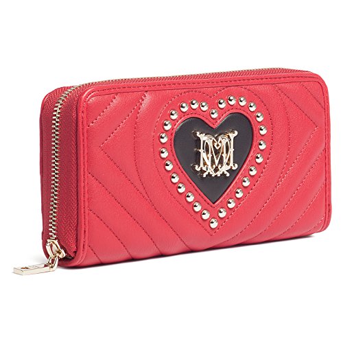 -. Feature : 100% Polyurethane- Smooth finish chevron quilted / Riveted heart embossing in contrast with light gold tone hardware / Zip around wallet;Dimensions:7.5in-4in-1.2in / 12 card slots; 1 note/receipt slot-Zipped coin section / Comes in an original Love presentation box- Made in China