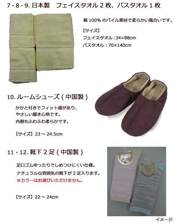 | 製造国 | 日本(ルームシューズ・ソックス:中国) |