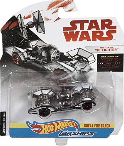 -. Binding : Toy -. Brand : Hot Wheels -. EAN : 0887961517620 -. Feature : Your favorite Star Wars starships have been reimagined as Hot Wheels cars for optimal speed and maximum performance! / Car ships capture the attributes of iconic starships while accelerating to light speed on Hot Wheels track (sold separately) / Includes 1 Hot Wheels Star Wars Car ship / A great gift for any Hot Wheels fan / Collect them all! -. Label : Mattel -. Manufacturer : Mattel -. Model : FGX89 -. MPN : FGX89 -. PackageQuantity : 1 -. PartNumber : FGX89 -. ProductGroup : Toy -. ProductTypeName : TOYS_AND_GAMES -. Publisher : Mattel -. Studio : Mattel -. Title : Hot Wheels Star Wars First Order Tie Fighter Carship Vehicle -. UPC : 887961517620 -. Warranty : 1 year warranty against manufacturer defects