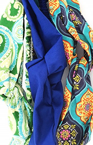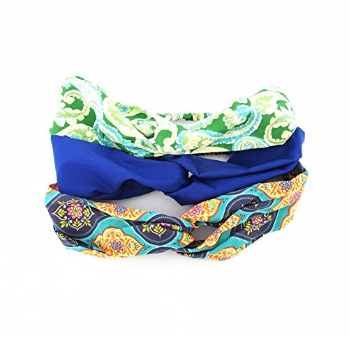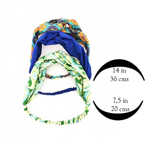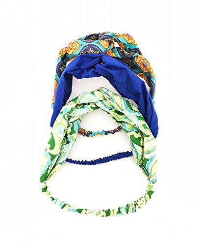 Nice design Green and Blue Women´s Headbands Twisted, 3 pcs Pack Cotton