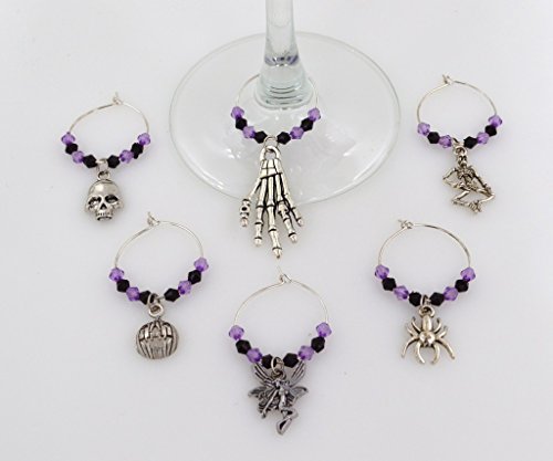 (It's All About...You!)/Kitchen Dining/Bar Tools Glasses/DIRECT FROM USA/Halloween Wine Glass Charms with Purple and Black Beads - 6 Piece Cocktail Drink Charm Set in B...