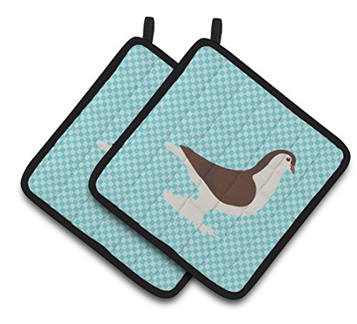 Caroline's Treasures BB8117PTHD Large Pigeon Blue Check Decorated Pot Holder, 7.5" x 7.5", Multicolor