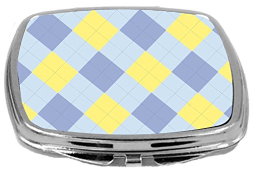 Rikki Knight Compact Mirror, Blue and Yellow On Blue Argyle