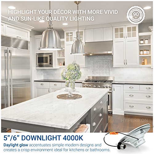 Hyperikon 6"-Inch LED Downlight (5"-Inch Compatible), Dimmable, 19W (100W Replacement), Retrofit LED Recessed Lighting Fixture, 4000K (Daylight Glow), CRI95, ENERGY STAR LED Ceiling Light (4 Pack)